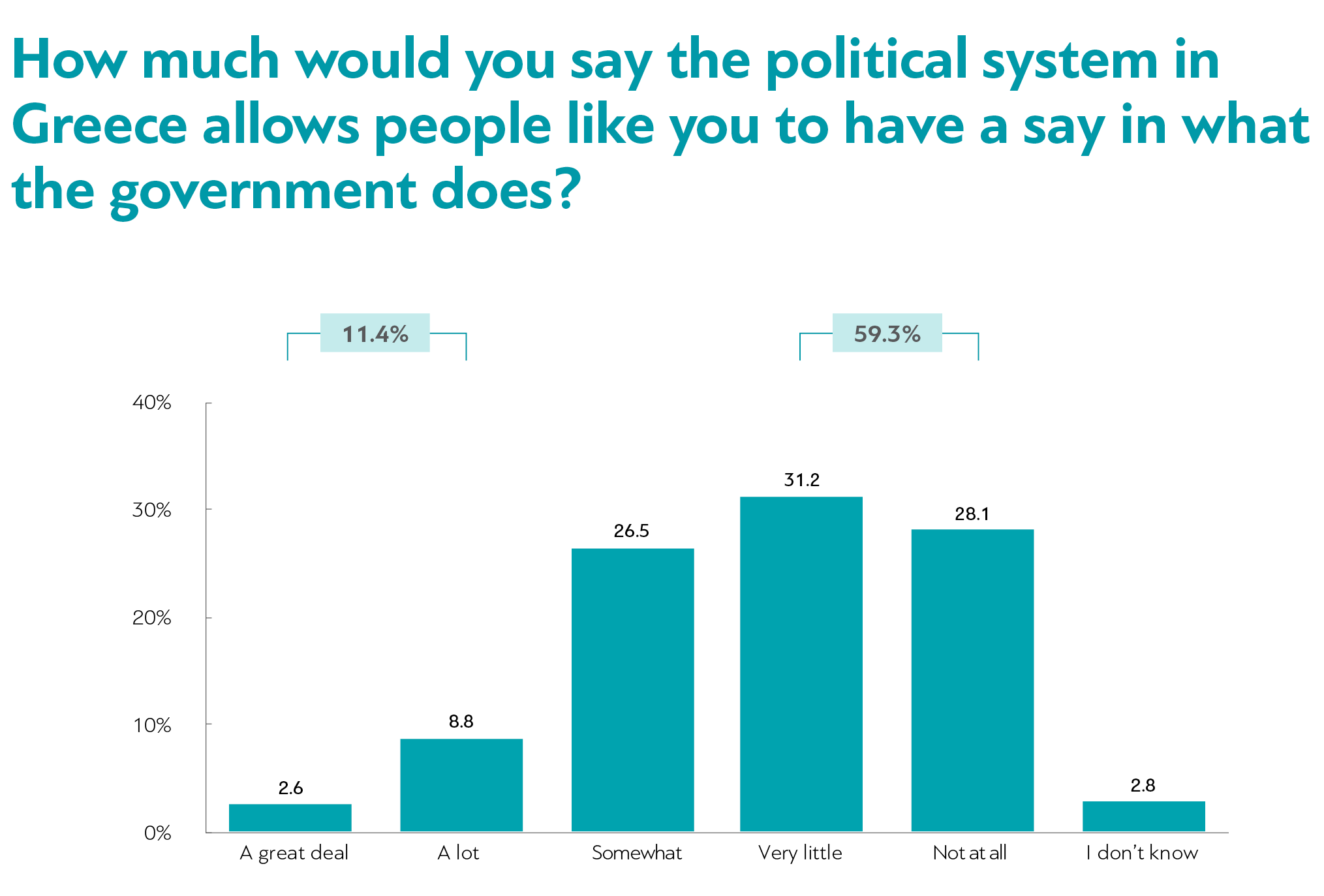 Beyond politics and its various dimensions, how does the Greek population feel about their lives? Do citizens feel they have the agency to shape their own futures? Do they report being satisfied and happy? Do they trust others?