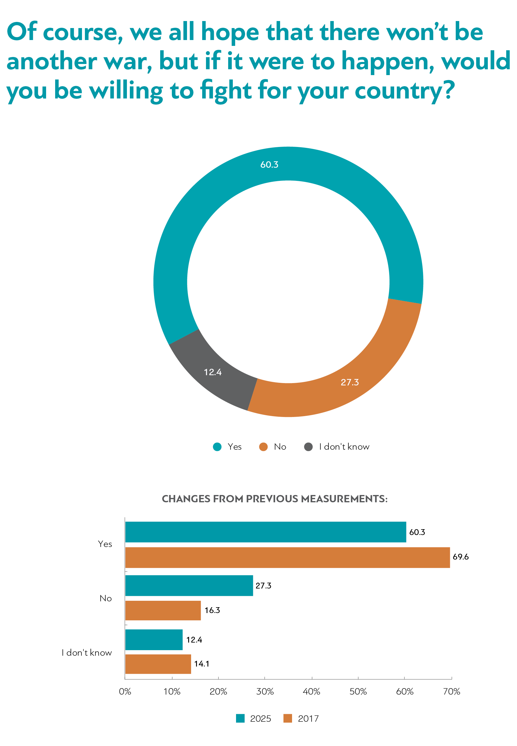 Next, the survey asks whether participants would be willing to fight for Greece in the event of a hypothetical war. While those unwilling to fight represent a minority, at 27.3% they are by no means insignificant. Notably, in the Attica Region, this percentage is significantly higher, reaching 36.5%. [Q21]